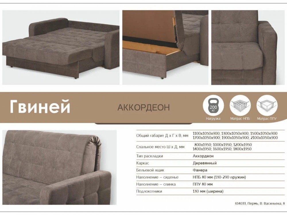 Диван Гвиней 1800х1950 производства «DimarroMebel» по цене 54940руб. для уюта в вашем доме. Доступные цвета: Зеленый, Бежевый, Коричневый, Синий, Желтый. Фотографии и характеристики - в карточке товара. Похожие товары можно посмотреть в разделе «Прямые диваны». Подоробности о Диван Гвиней 1800х1950 узнавайте у наших менеджеров по телефону +7 (982) 675-60-72.