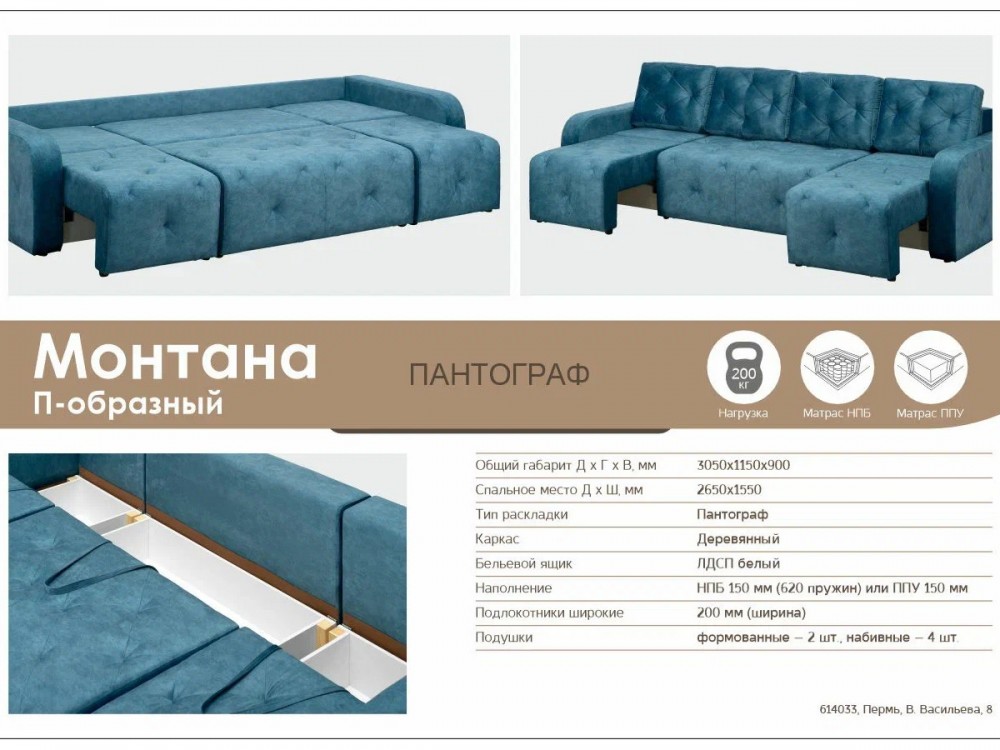 Диван Монтана П-образный в Коркино - korkino.mebel74.com | фото 2